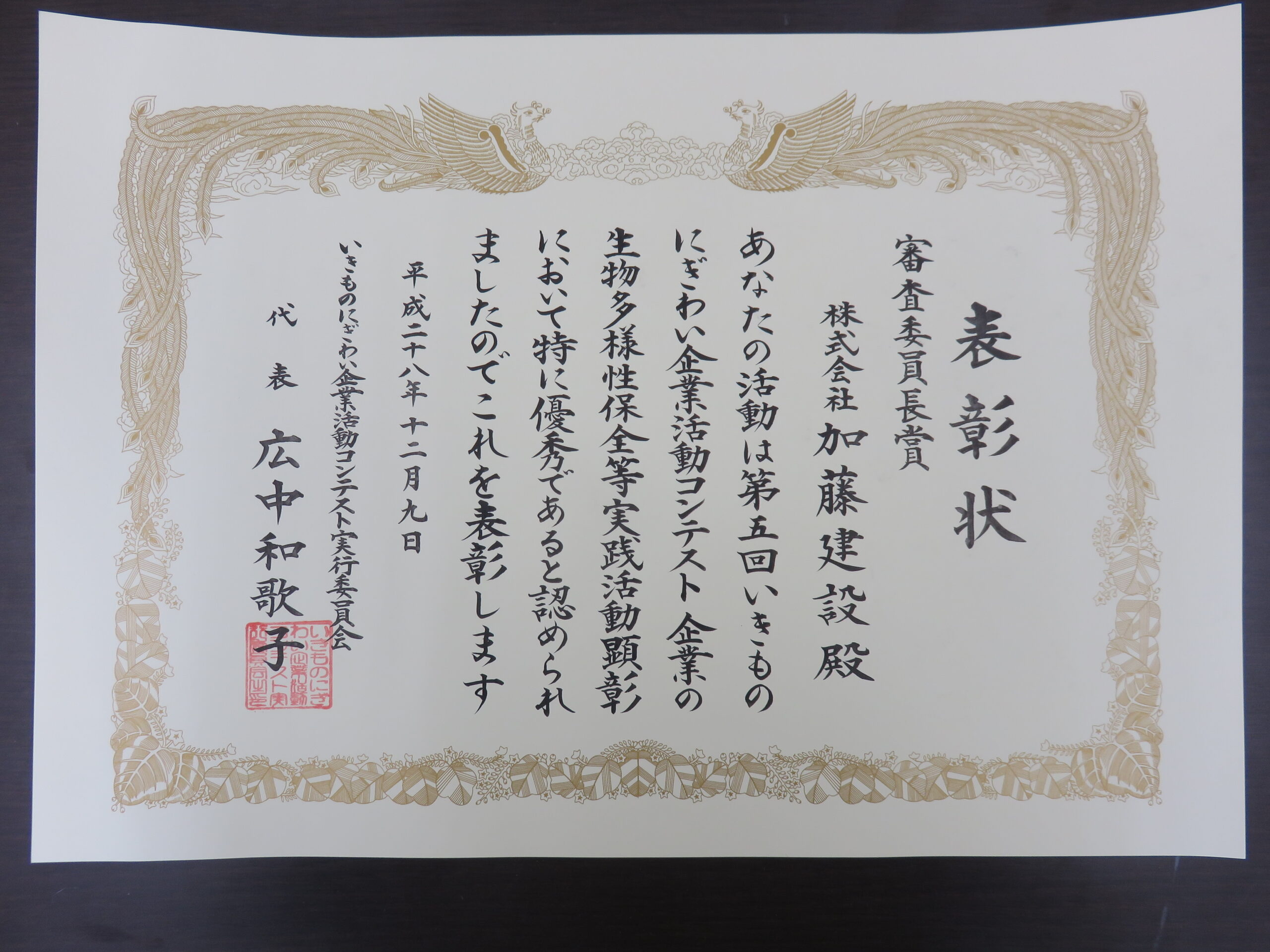 | 受賞名 | 第5回 いきものにぎわい企業活動コンテスト 審査委員長賞 |