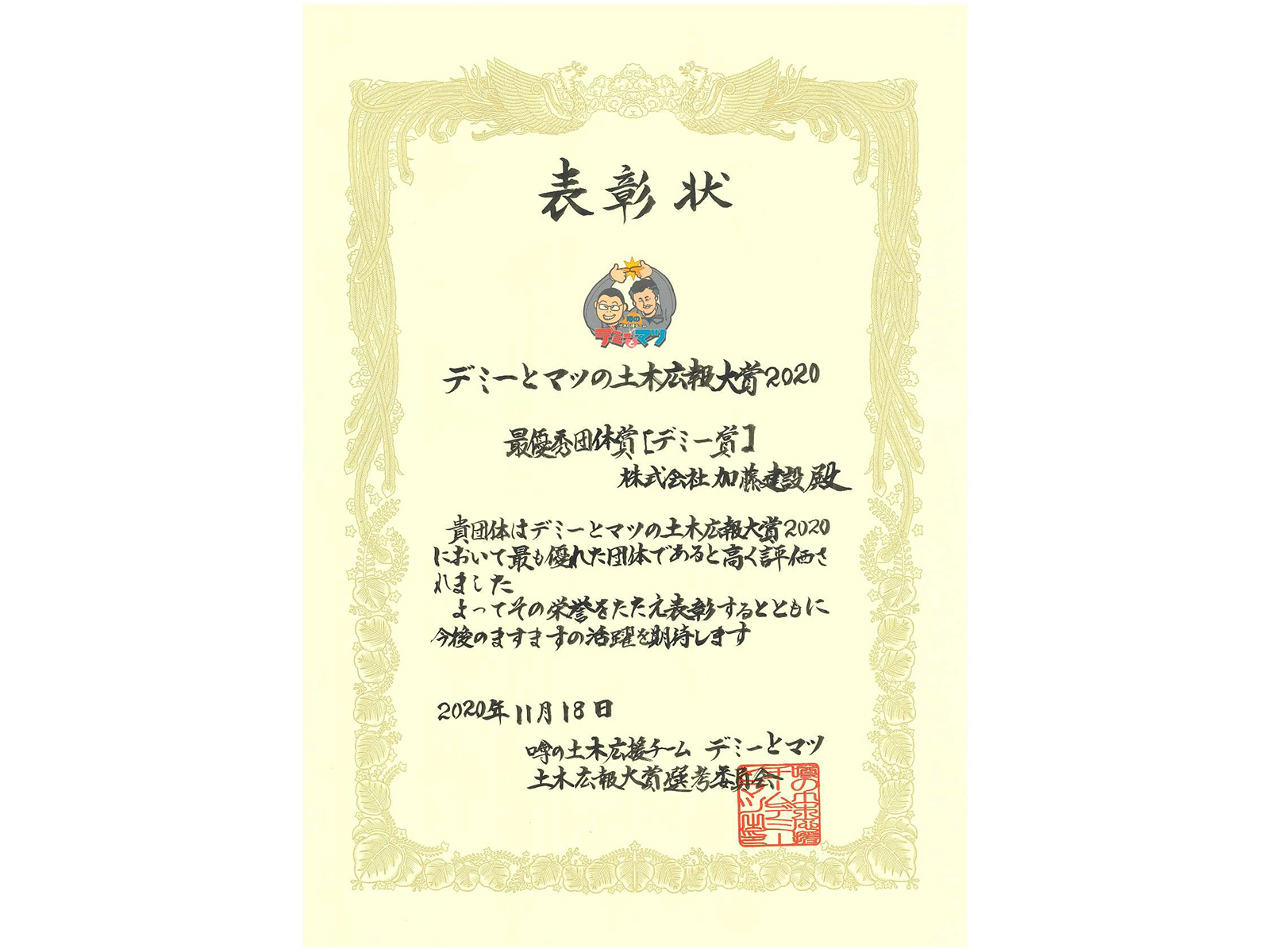 | 受賞名 | デミーとマツの土木広報大賞2020 最優秀団体賞[デミー賞] |