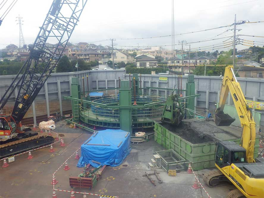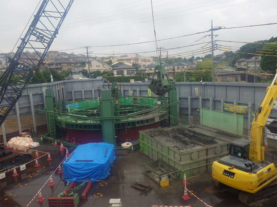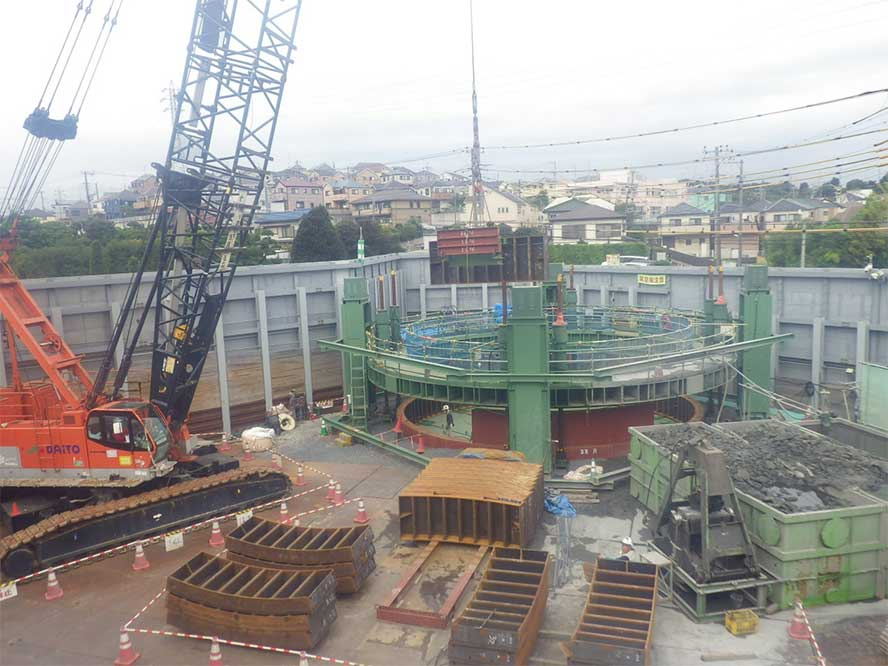 imageimageimage DATA 工事名工業用水道 東寺尾送水管口径1100㎚更新工事(その1)発注者横浜市水道局工事概要外径φ12.662m深度48.1m工事場所神奈川県横浜市 圧入ケーソン アーバンリング(立坑) 湊川付近鋼製橋脚等大規模更新工事前の施工事例 中部9号幹線築造工事次の施工事例