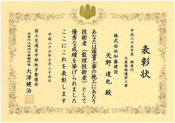 imageimageimageimageimageimageimageimage DATA 工事名平成25年度 揖斐川大巻築堤護岸工事施工年2014年3月発注者国土交通省 中部地方整備局 木曽川上流河川事務所工事場所岐阜県 養老郡養老町表彰優良工事、技術者環境環境提案書、植生調査、環境掲示板、災害復旧 土木・建築 護岸・堤防補強 平成25年度 揖斐川城南立田高潮堤防補強工事前の施工事例 中小河川改良工事(河床掘削工7号工)次の施工事例
