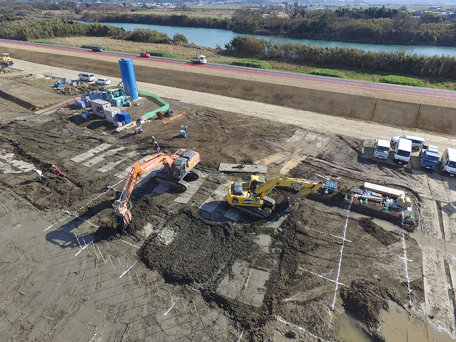 imageimage DATA 工事名平成28年度災害復旧緑川下仲間下流地区外堤防復旧工事改良深度3.2~4.2m工事場所熊本県上益城郡嘉島町 地盤改良 盛土の安定対策 平成25年度 東海環状北勢第一高架橋中下部工事前の施工事例 仙台市東部復興道路整備事業(主)塩釜亘理線改築工事(藤塚工区・その2)次の施工事例
