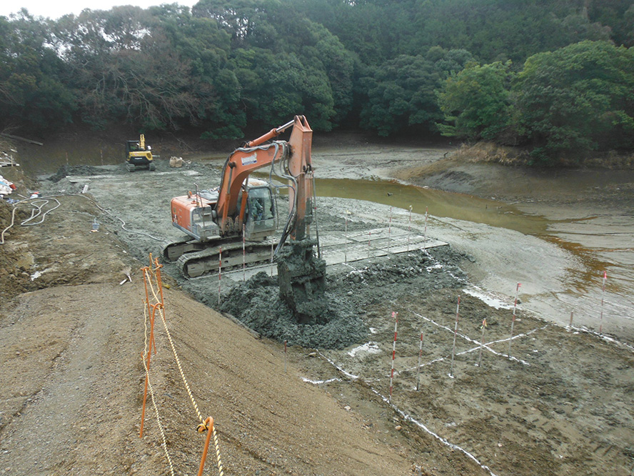 image DATA 工事名平成29年度ため池等整備菅山地区堤体改修工事改良深度4.39m工事場所静岡県御前崎市 地盤改良 調整池の基礎 中区栄三丁目地内ほか下水道改築工事前の施工事例 新名神高速道路 城陽ジャンクション工事次の施工事例
