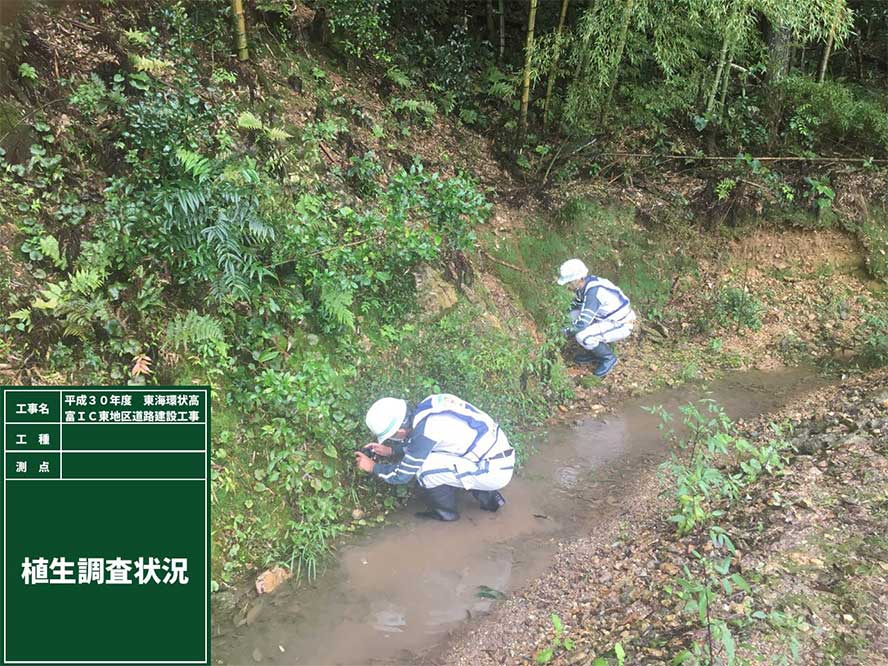 | 環境 | 環境提案書、地域在来植生混合による法面種子吹付、水生生物調査、植生調査、環境掲示版 カトケンブログ「工事前には生き物チェック!」 |