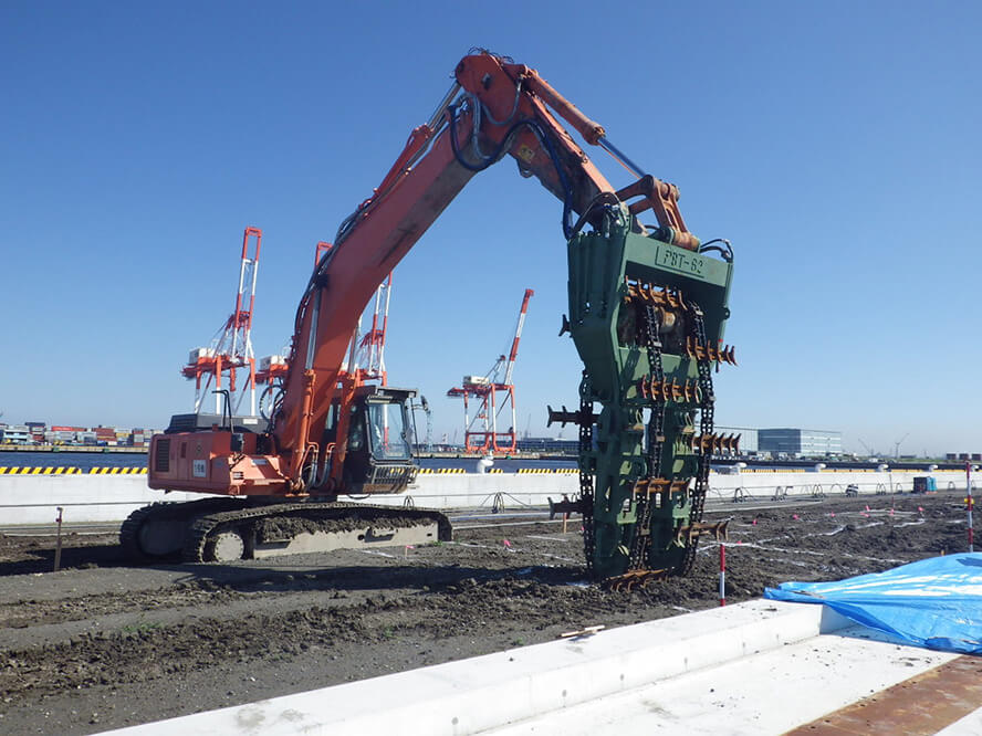 image DATA 工事名横浜港南本牧地区コンテナヤード整備工事改良深度1.5m工事場所神奈川県横浜市 地盤改良 液状化対策 仙台市東部復興道路整備事業(主)塩釜亘理線改築工事(藤塚工区・その2)前の施工事例 平成27 年度用地造成事業愛西佐織地区整地工事その1次の施工事例