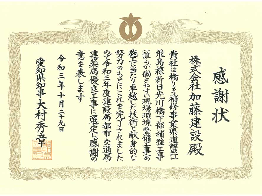 | 表彰 | 優良工事 |