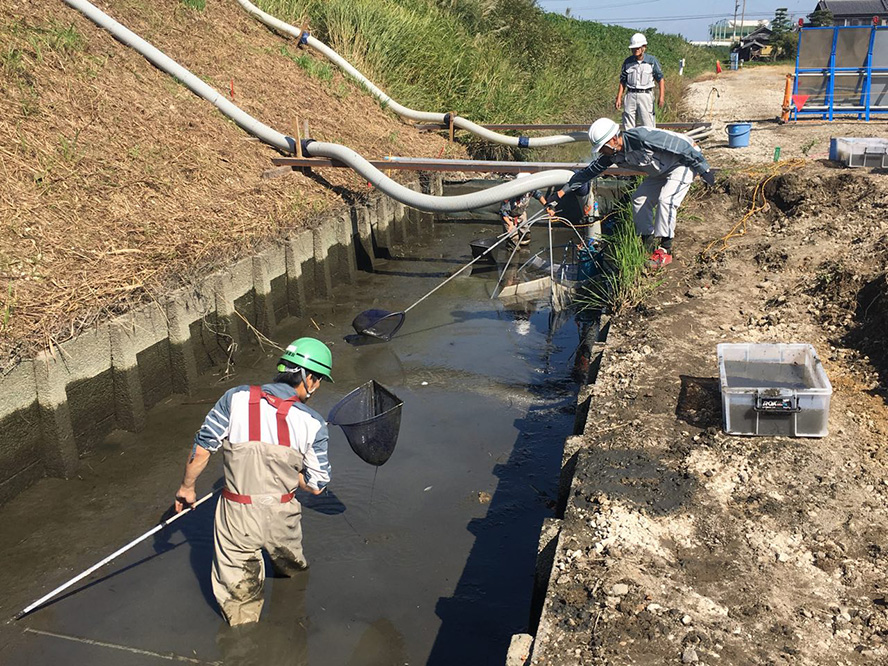 | 環境 | 環境提案・実施計画書、植生調査、水生生物保護 カトケンブログ「道路改良工事でエコミーティング&水路の生き物保護!!」 |